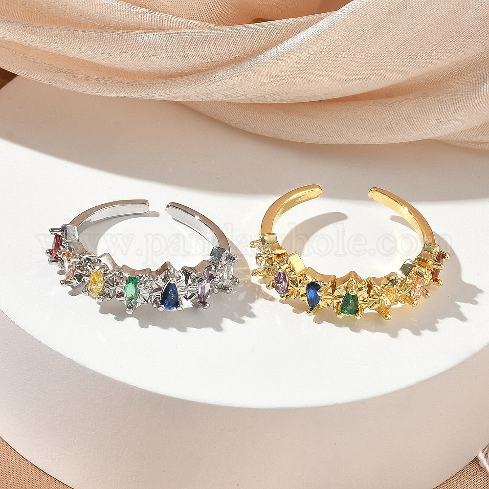 Латунные микропаве кубические цирконии манжеты открытые кольца для женщин, слеза, без кадмия и без свинца, стойки покрытие, долговечный