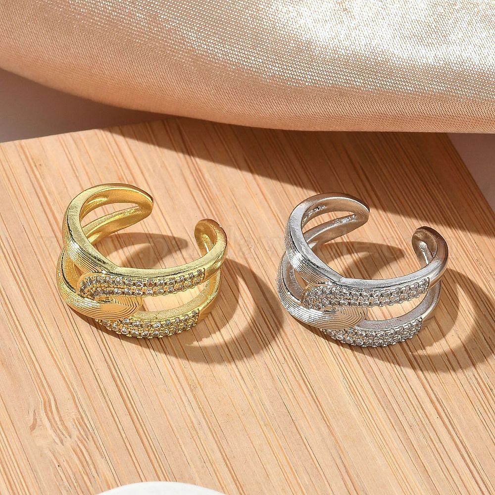 Открытые кольца манжеты из латуни с микропаве и кубическим цирконием, крест крест кольца, без кадмия и без свинца, стойки покрытие, долговечный