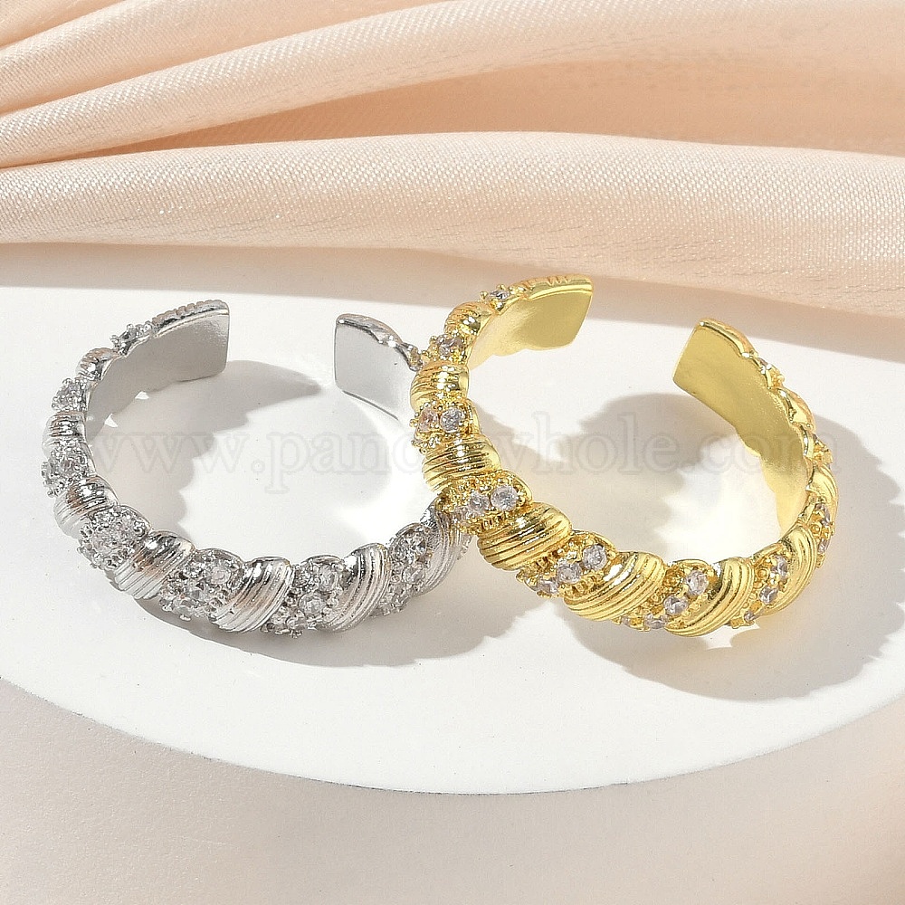Открытые кольца манжеты из латуни с микропаве и кубическим цирконием, твист, без кадмия и без свинца, стойки покрытие, долговечный