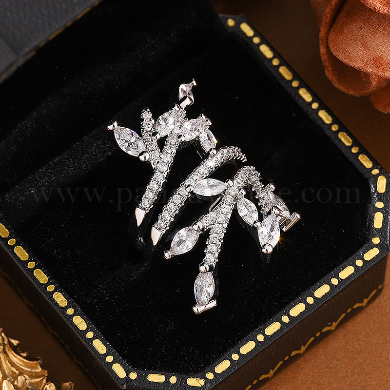 Латунные кольца-манжеты с микропаве из прозрачных кубических цирконий, лист