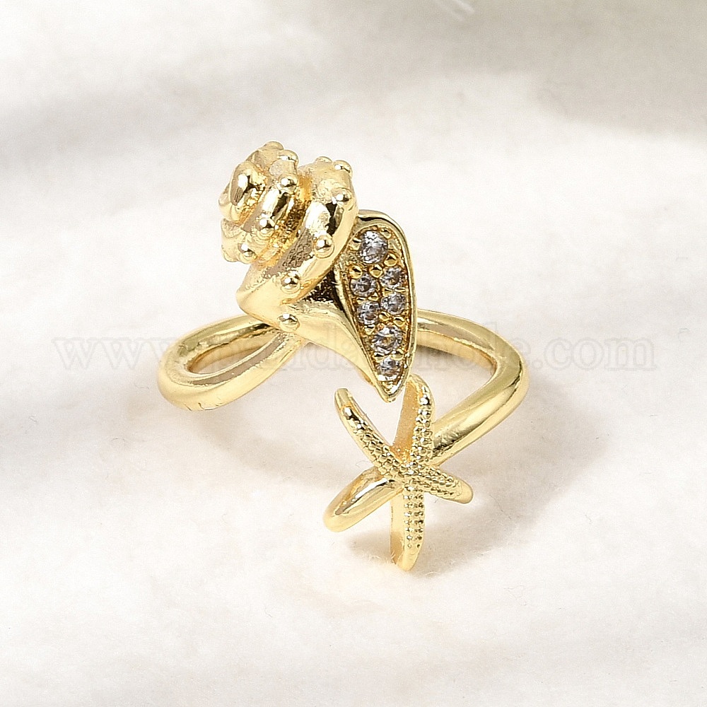 Латунные кольца-манжеты с микропаве из прозрачных кубических цирконий, морская звезда в форме раковины, без кадмия и без свинца, долговечный, стойки покрытие