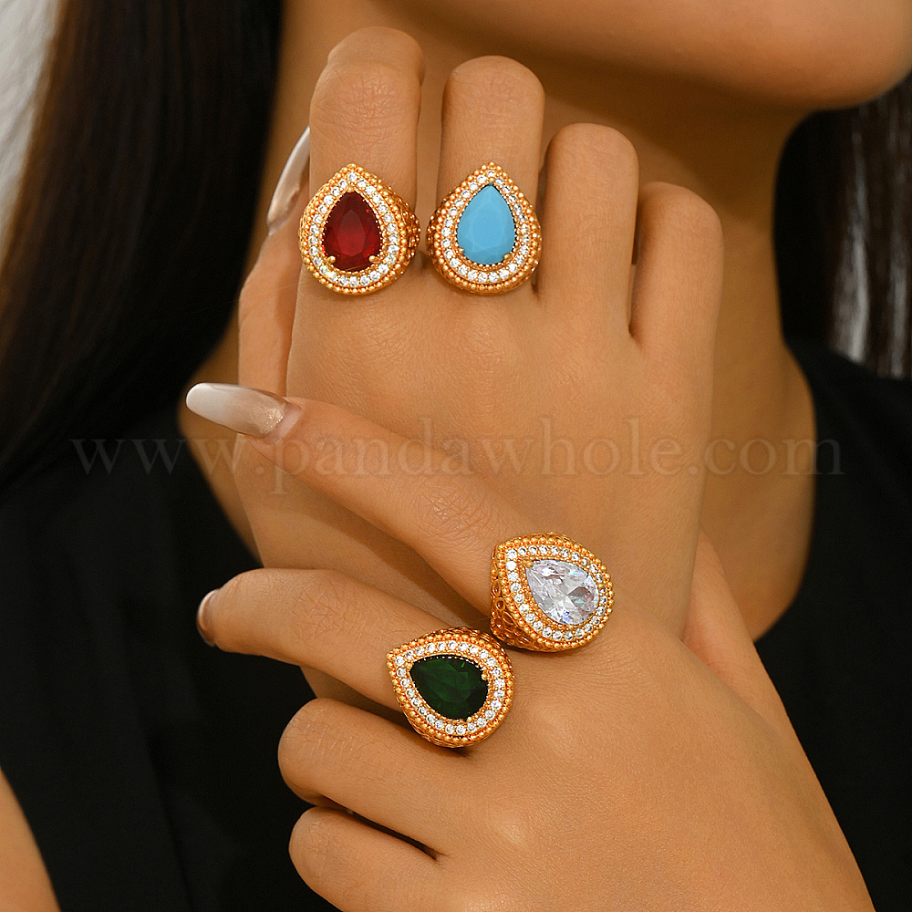 Винтажные богемные латунные кольца-манжеты с микропаве из кубического циркония для женщин., слеза, золотые