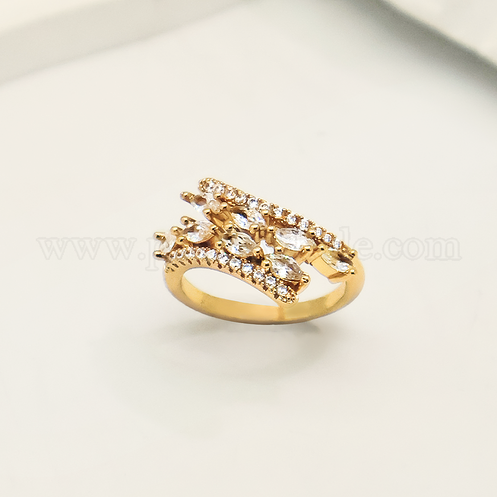 • Настоящее золото 18K Регулируемые латунные кольца-манжеты с микропаве для женщин, реальный 18 k позолоченный, 16 mm ~ 20 mm
