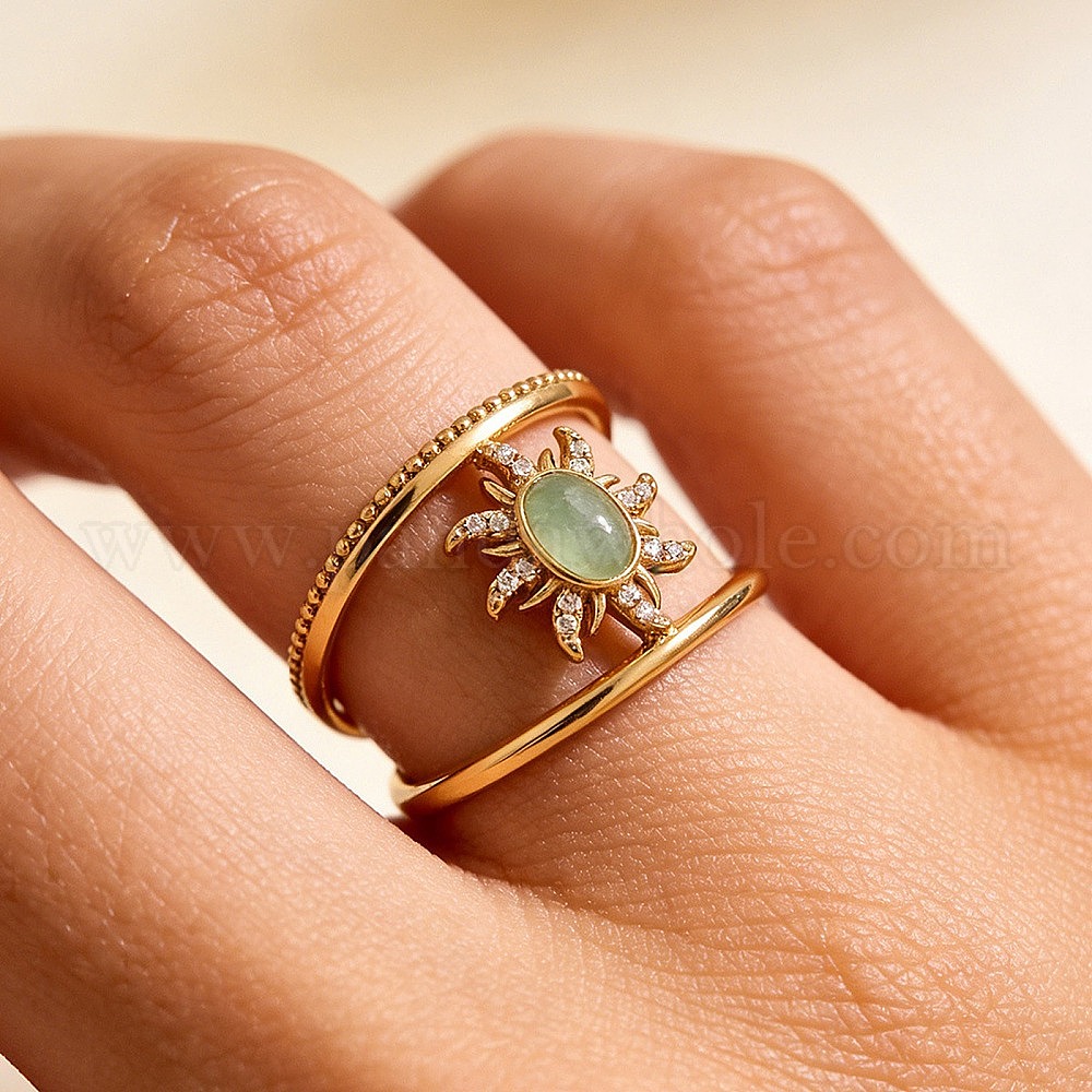 • Золотой Открытые кольца-манжеты из латуни с микропаве из кубического циркония и натуральными драгоценными камнями для женщин., солнце, золотые, 16 мм, внутренний диаметр: 17 мм