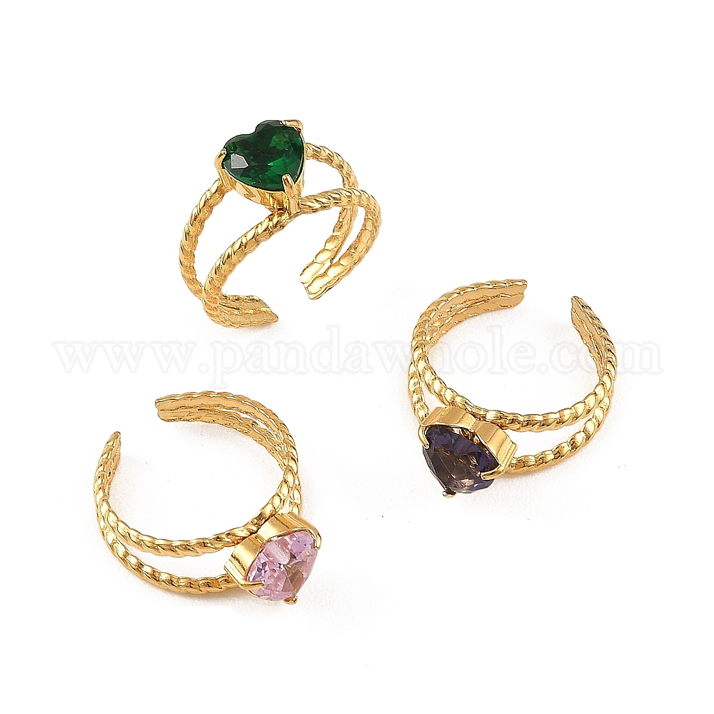 304 Открытые кольца-манжеты из нержавеющей стали и кубического циркония для женщин, сердце, золотые