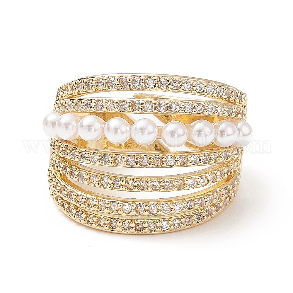 Регулируемые латунные кольца микро манжеты из прозрачного циркония, открытые кольца, с акриловой жемчужины, долговечный