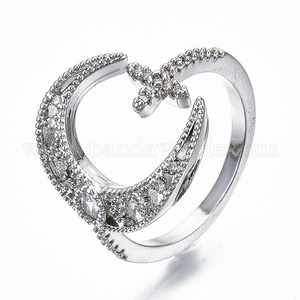 Латунные кольца из манжеты с прозрачным цирконием, открытые кольца, без кадмия, без никеля и без свинца, луна с крестом