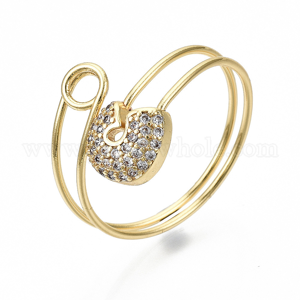Латунные кольца из манжеты с прозрачным цирконием, открытые кольца, без кадмия, без никеля и без свинца, Форма предохранительного штифта