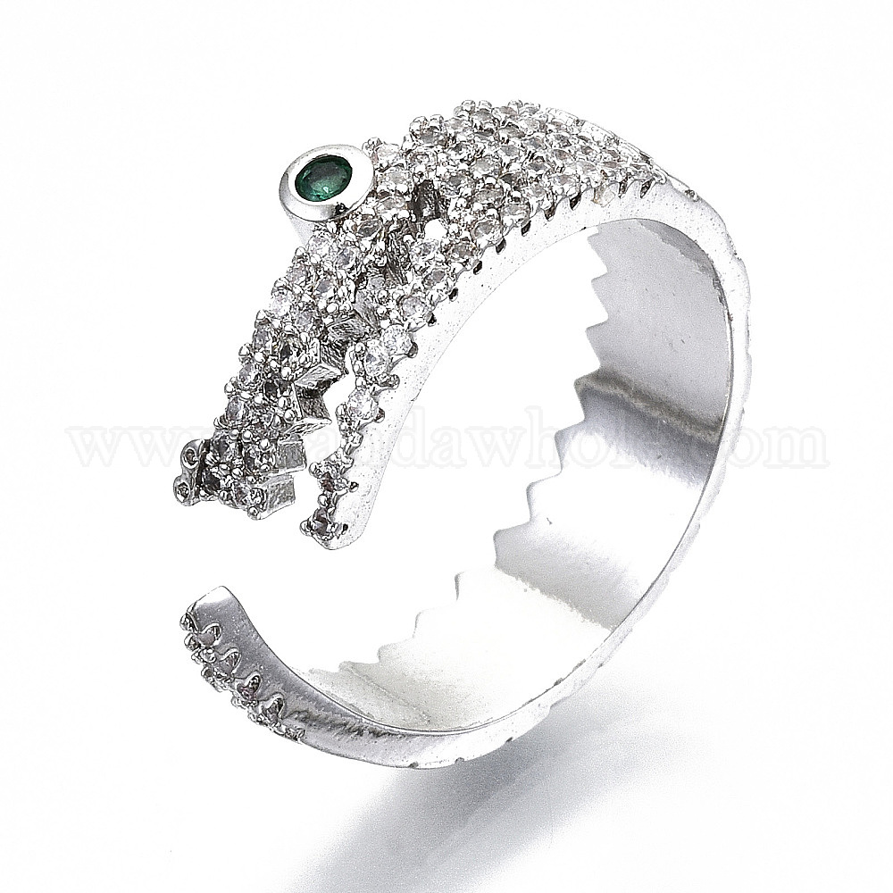Латунные кольца из манжеты с прозрачным цирконием, открытые кольца, без кадмия, без никеля и без свинца, крокодил