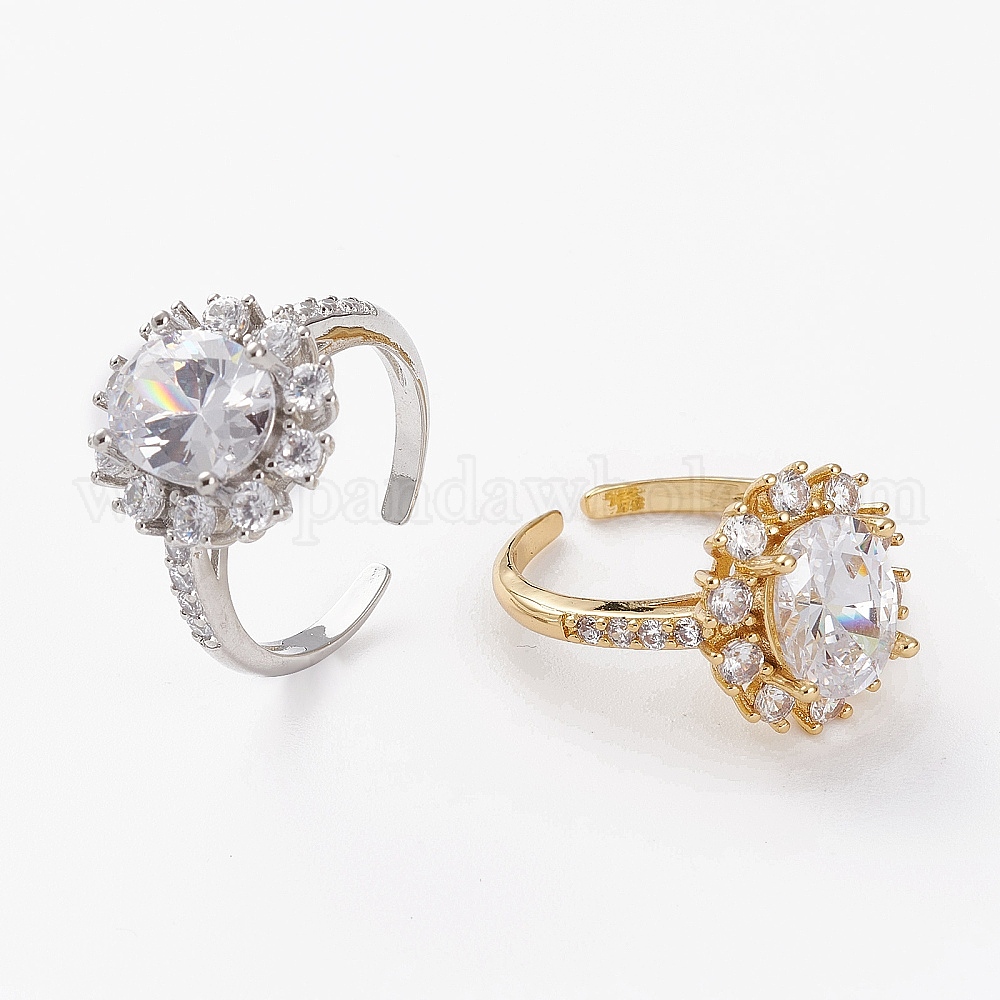 Латунные кольца из манжеты с прозрачным цирконием, долговечный, овальные