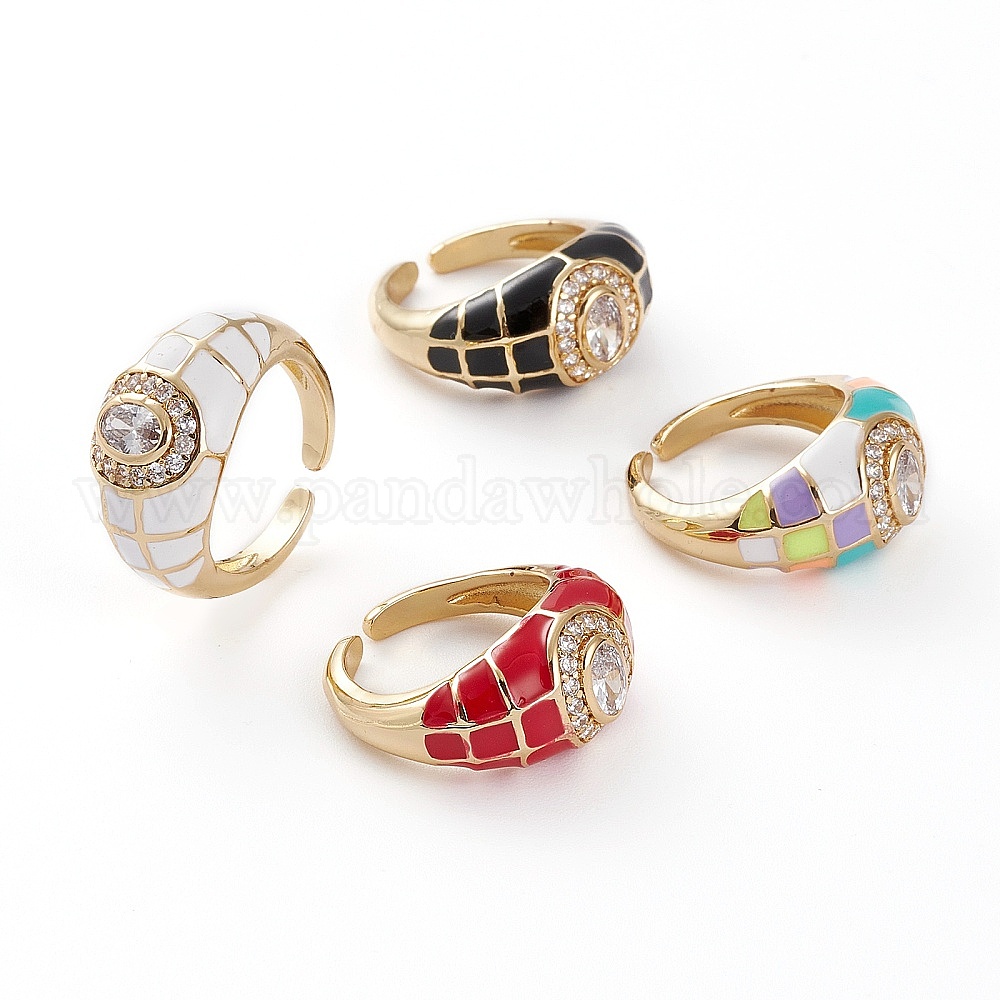 Латунные кольца из манжеты с прозрачным цирконием, с эмалью, долговечный, овальные, золотые