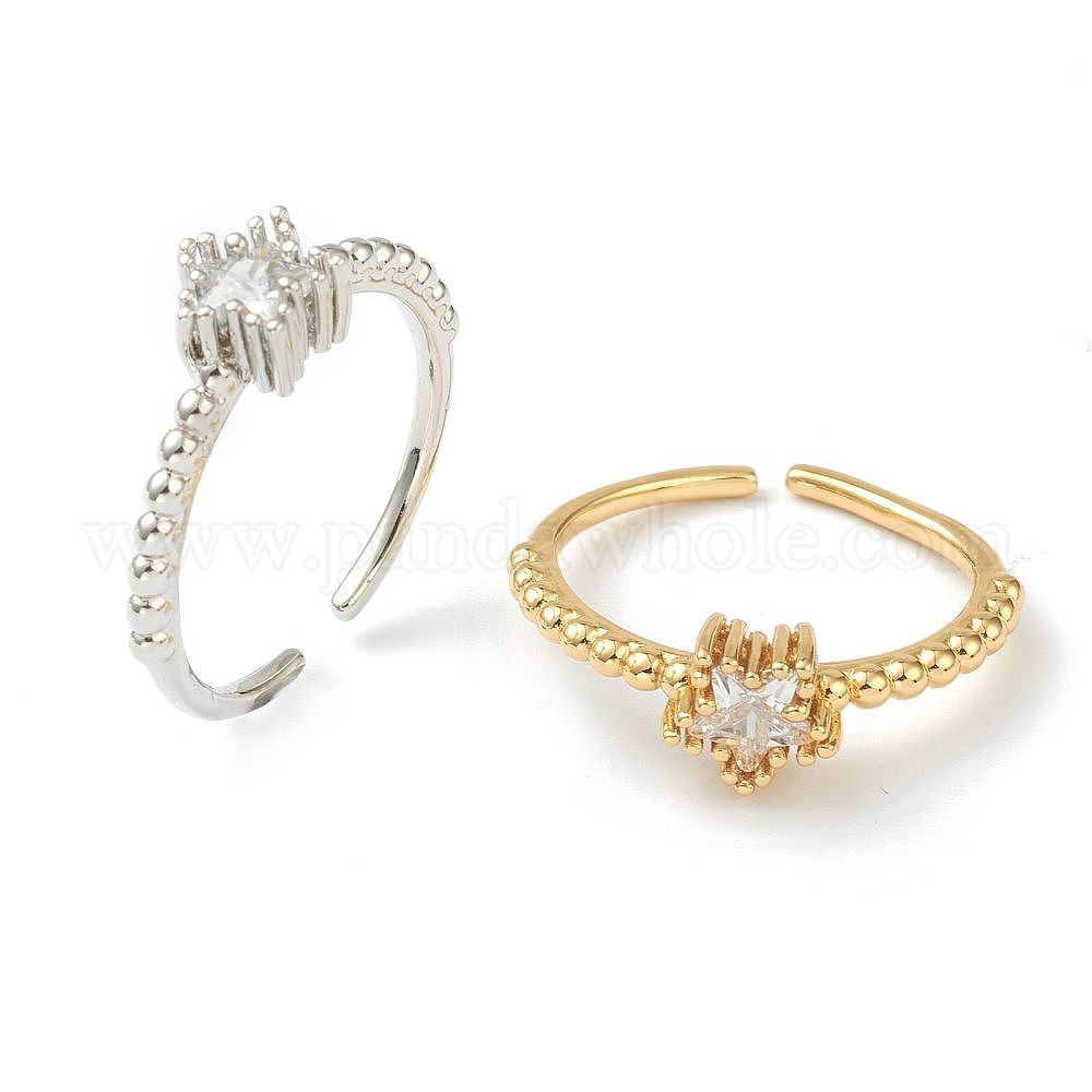 Латунные кольца из манжеты с прозрачным цирконием, открытые солитерные кольца, звезда