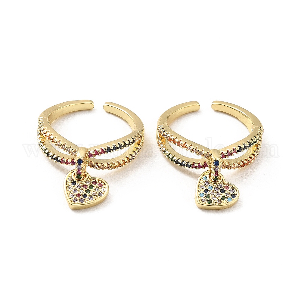 Открытое кольцо-манжета с подвеской в виде сердца со стразами, настоящие позолоченные украшения из латуни для женщин, без кадмия и без свинца