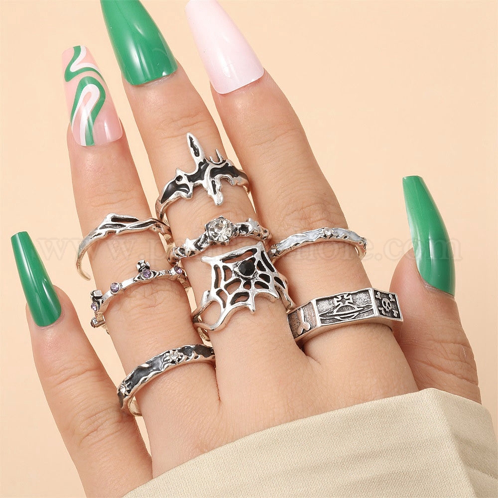 8шт. Кольца-манжеты из сплава со стразами, Эмаль стиле