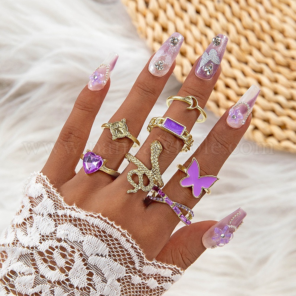 7 шт. 7 стили сплав горный хрусталь простые полосы кольца, стиль эмалевого шарма