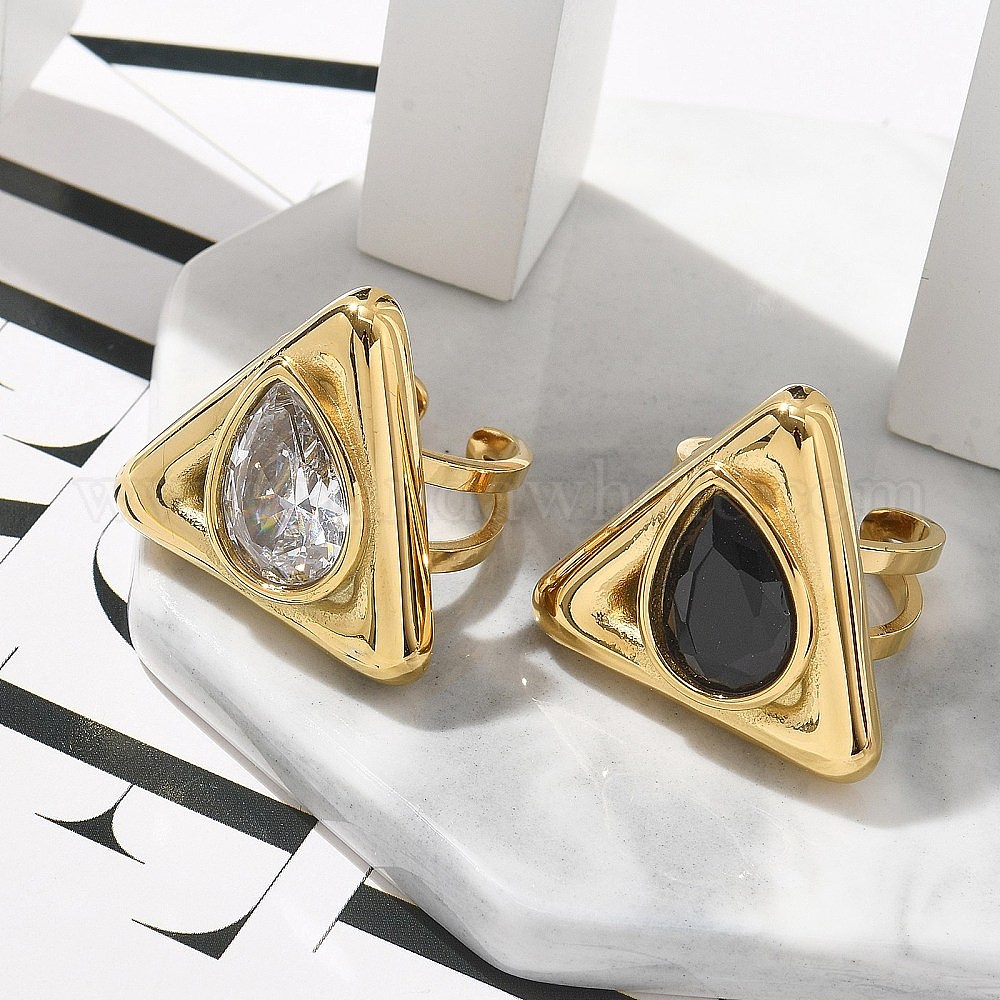 • Кристалл Треугольник 304 открытые манжеты из нержавеющей стали со стразами для женщин, реальный 18 k позолоченный, кристалл, Треугольник: 25x28 мм, внутренний диаметр: регулируемый