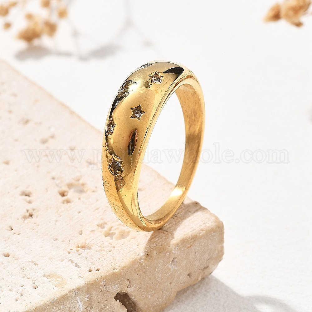 • Золотой Звезда 304 перстни из нержавеющей стали со стразами, ионное покрытие (ip), золотые, 6.5 мм, размер США 7 1/4 (17.5 мм)