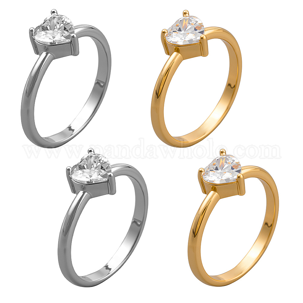 4 шт. 2 Цвета регулируемые латунные кольца со стразами для женщин, сердце