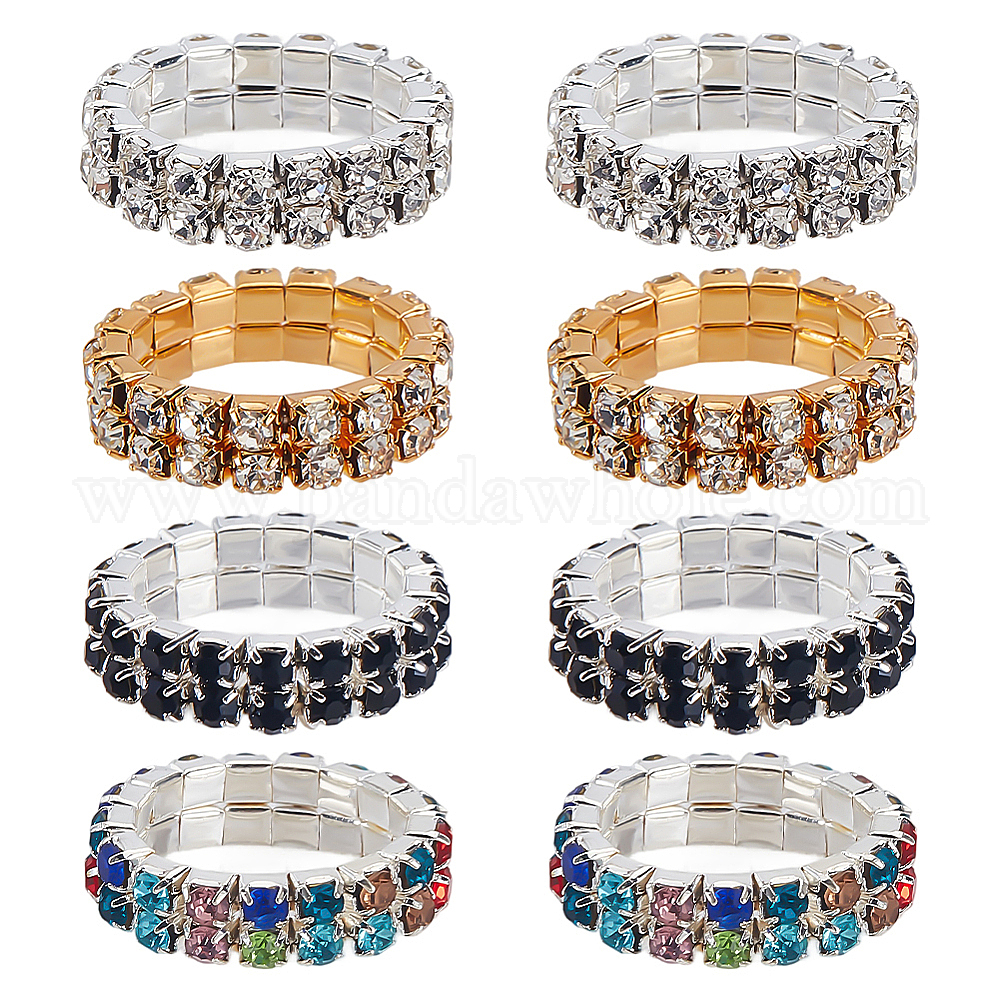 8 шт. 4 цветные эластичные кольца со стразами для женщин