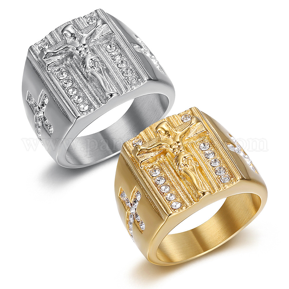 Крест с изображением Иисуса 304 мужские перстни из нержавеющей стали с кристаллами и стразами
