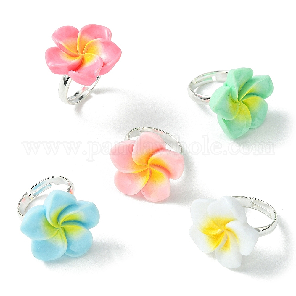 Кольцо на палец из смолы с цветком плюмерии, регулируемое кольцо из серебряной латуни