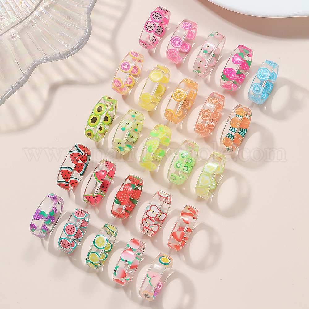 Летние прозрачные смоляные кольца с фруктовым узором для женщин (02ZZYD)