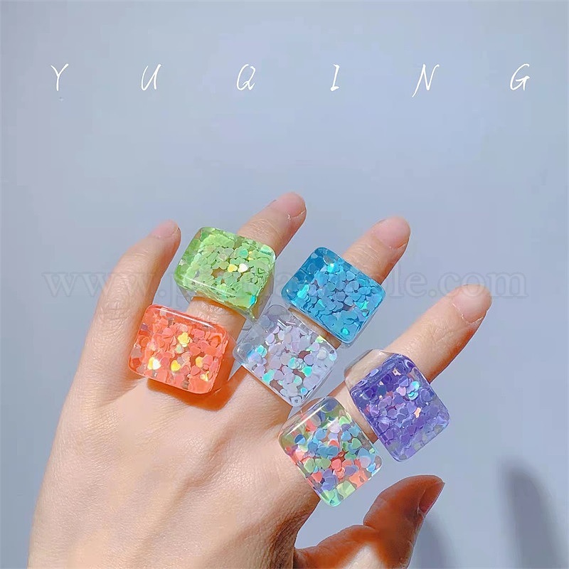 Кольца из смолы для женщин, прямоугольные, с пластиковыми блестка бисером