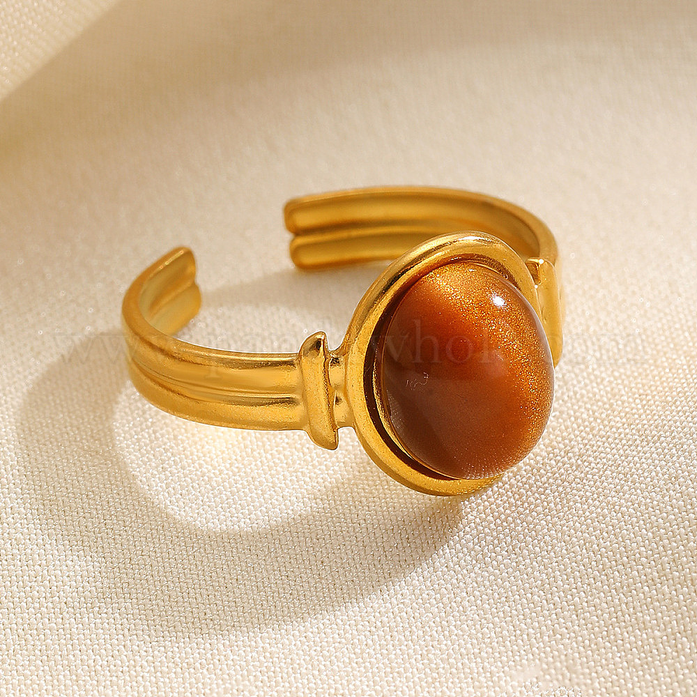 304 Манжета из нержавеющей стали с открытыми кольцами из искусственной смолы, имитирующей тигровый глаз., золотые
