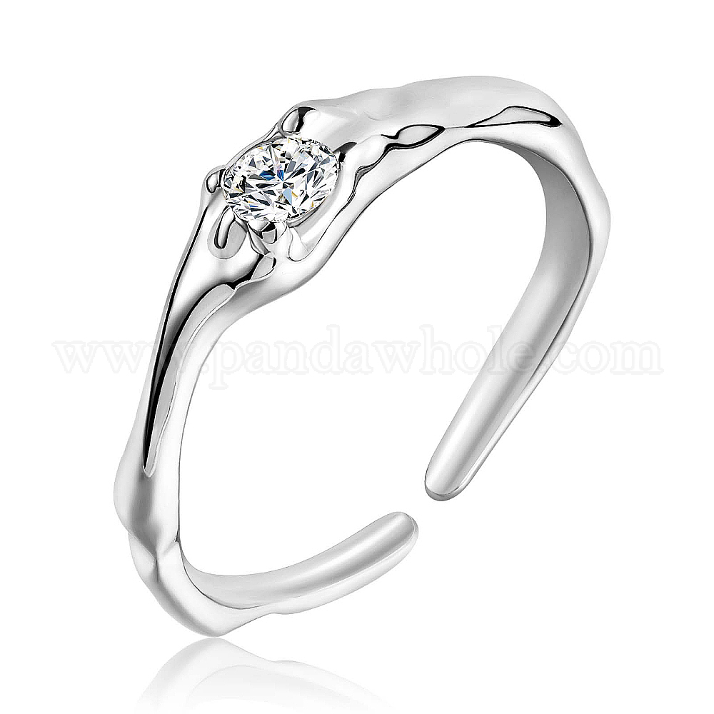 925 открытое кольцо-манжета из стерлингового серебра, простое тонкое кольцо из прозрачного кубического циркония для женщин (02EQDN)