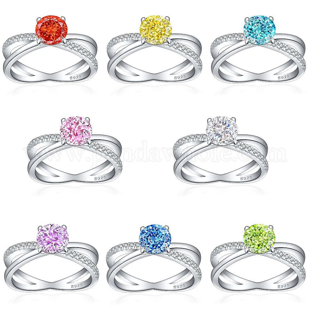 925 Кольца с простой полосой из стерлингового серебра с микропаве и кубическим цирконием, Реальная платина, плоско-круглые