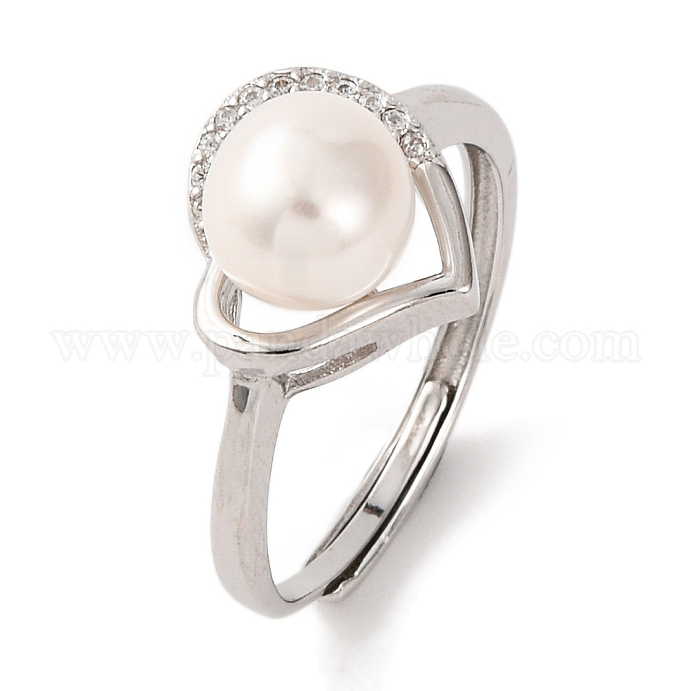 Позолоченное сердце 925 стерлинговое серебро прозрачный кубический цирконий регулируемые кольца, кольца из натурального жемчуга круглые для женщин