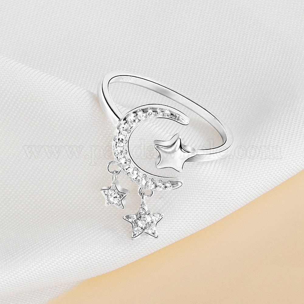 925 Кольца-манжеты из стерлингового серебра с микропаве из кубических цирконий для женщин, Луна и звезды