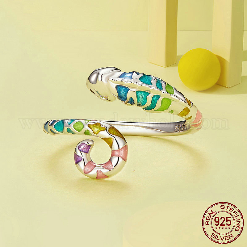 925 Кольца-манжеты из стерлингового серебра с кубическим цирконием и эмалью, хамелеон