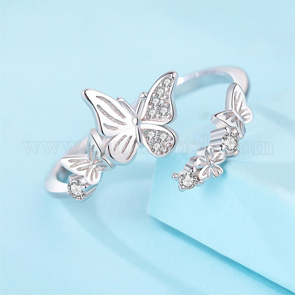 925 кольца манжеты из серебра микропаве фианит, бабочка, регулируемый, с печатью s925