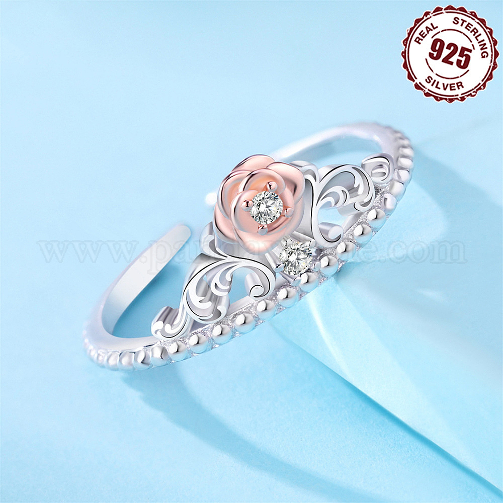 Роза 925 стерлинговое серебро микропаве прозрачные кубические цирконии регулируемые манжеты кольца
