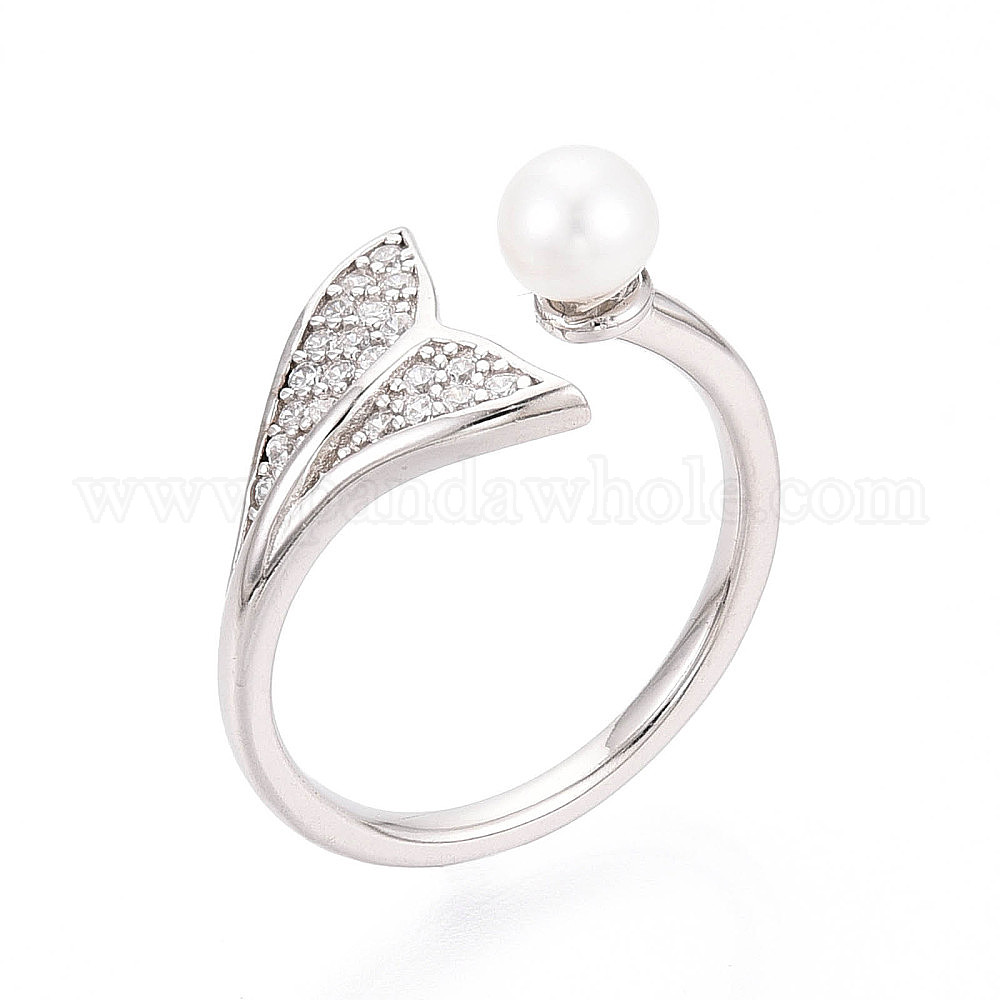 Регулируемое кольцо из стерлингового серебра с кубическим цирконием в форме русалочьего хвоста, кольцо-манжета с натуральной пресноводной жемчужиной