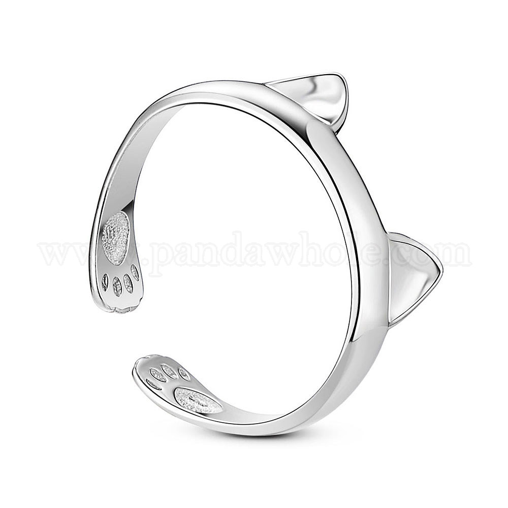 Милый дизайн 925 кольцо из стерлингового серебра, манжеты кольца, открытые кольца, с кошачьими ушами, 17 мм (00JEC4)