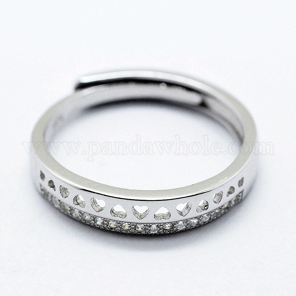 • Платина Кольца из стерлингового серебра с родиевым покрытием, устойчивые к потускнению, с кубического циркония, регулируемый, сердце, платина, размер 925 (9мм), шириной 19 мм