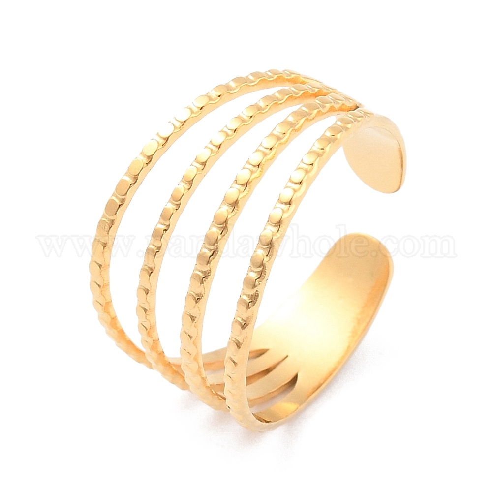 • Золотой Ионное покрытие (ip) 304 широкое открытое манжетное кольцо из нержавеющей стали для женщин, золотые, внутренний диаметр: 17.3 мм
