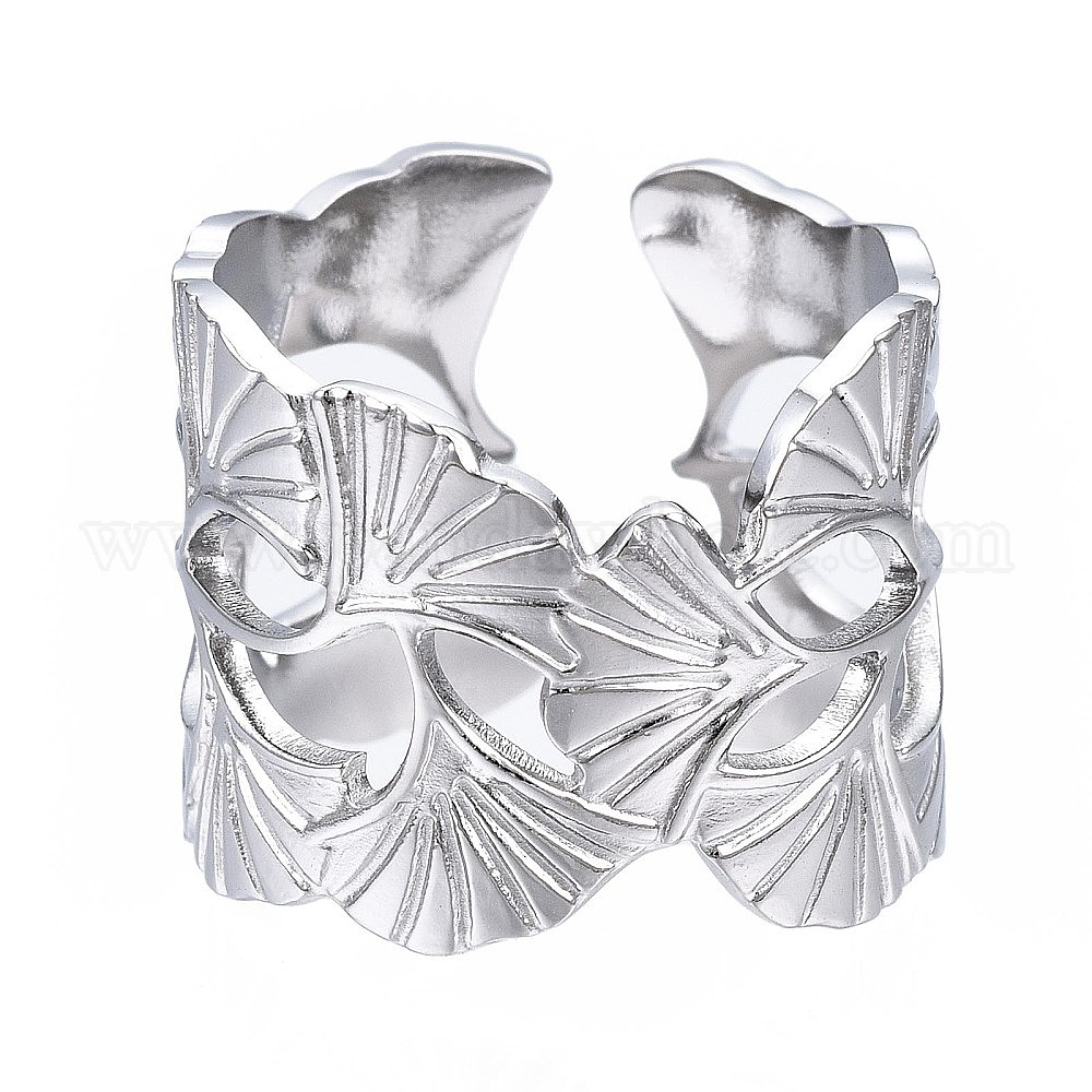 304 открытое манжетное кольцо из нержавеющей стали с листьями гинкго, массивное полое кольцо для женщин