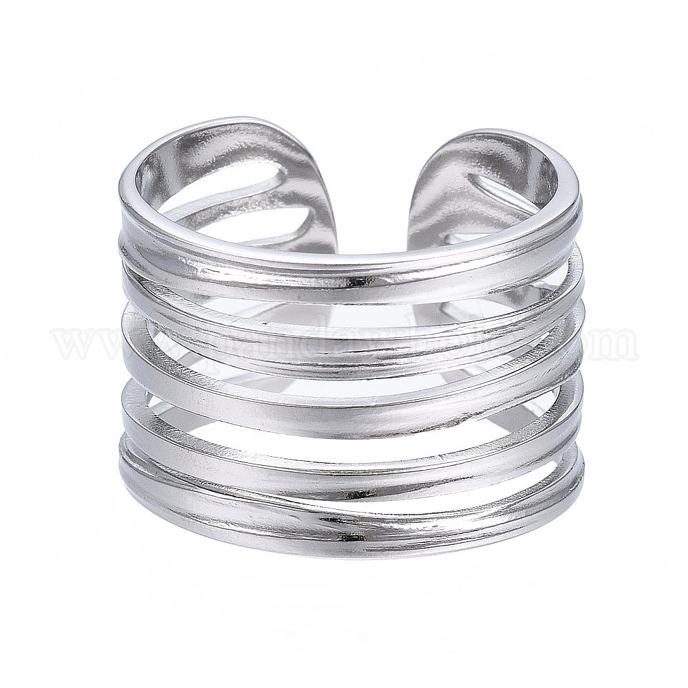• Нержавеющая Сталь Цвет Не тускнеет 304 многострунное открытое манжетное кольцо из нержавеющей стали, массивное полое кольцо для женщин, цвет нержавеющей стали, размер США 7 (17.3 мм)