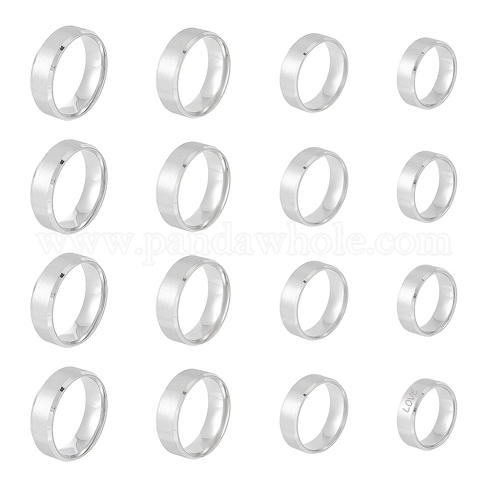 • Matte Stainless Steel Color 16 шт. 4 размер 201 простые кольца из нержавеющей стали для мужчин и женщин, матовый цвет нержавеющей стали, размер США 10 3/4~14 (20.3~23 мм), 4шт / размер