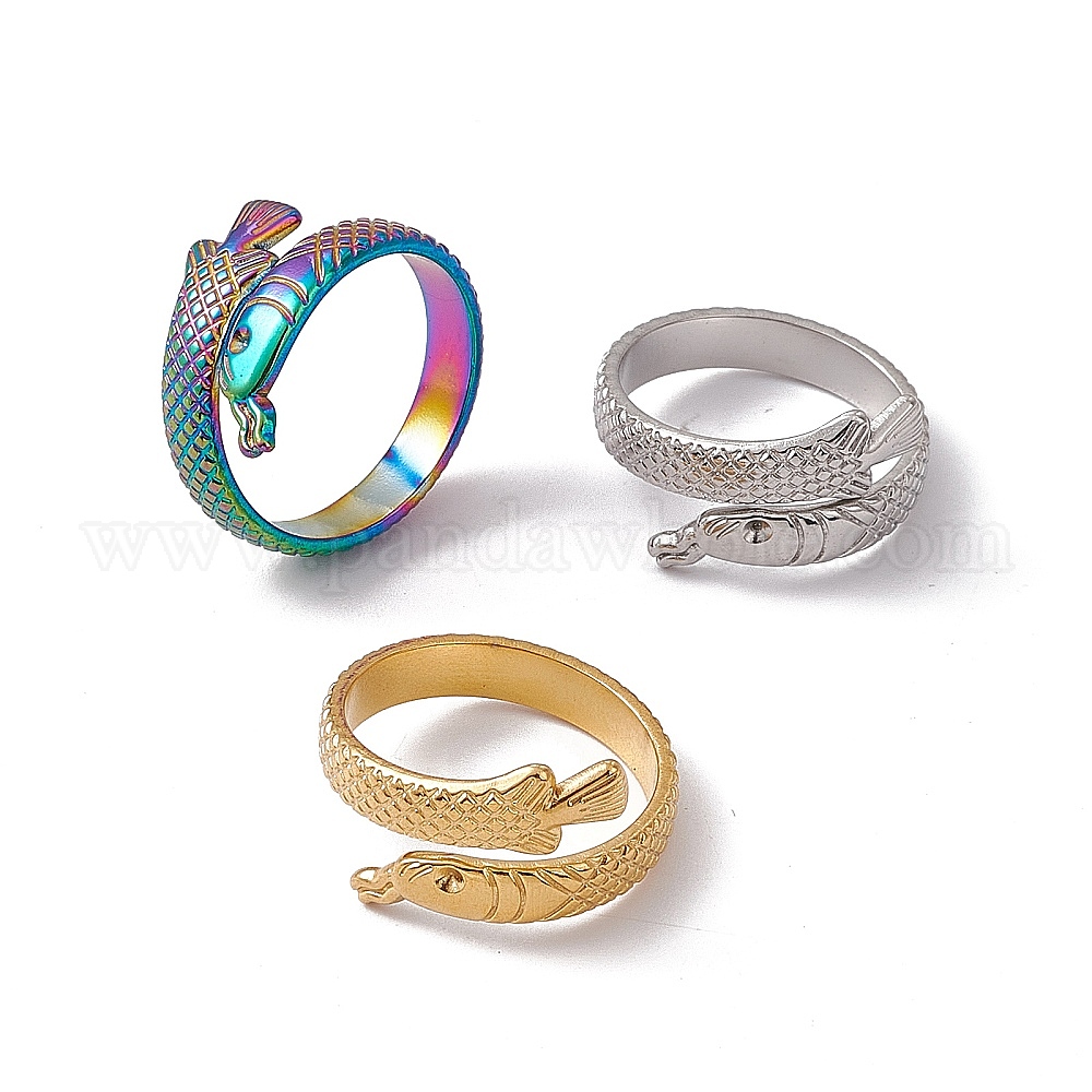 • Нержавеющая Сталь Цвет Не тускнеет 304 кольцо из нержавеющей стали с открытым манжетным кольцом в виде рыбы-арованы для женщин, цвет нержавеющей стали, размер США 7 1/4 (17.5 мм)