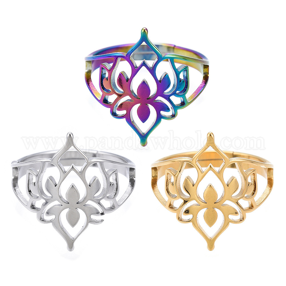 304 регулируемое кольцо из полого цветка из нержавеющей стали, широкое кольцо для женщин