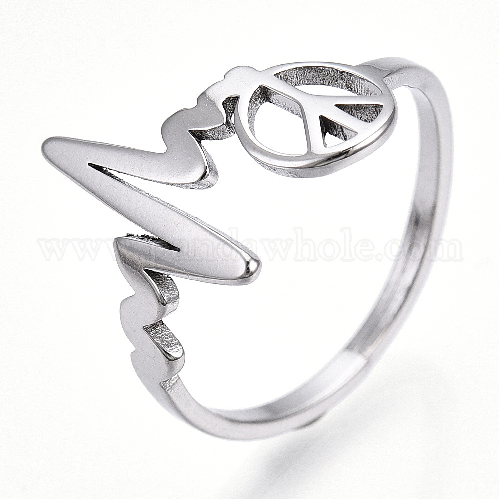 304 сердечко из нержавеющей стали с регулируемым кольцом в виде знака мира, широкое кольцо для женщин