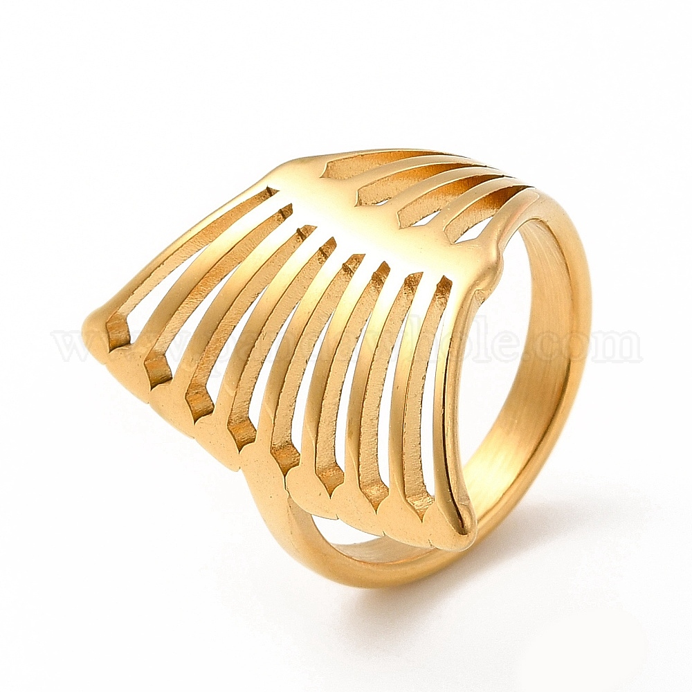 Ионное покрытие (ip) 304 кольца из нержавеющей стали для мужчин и женщин, полые кольца в форме грабель с широкими полосами