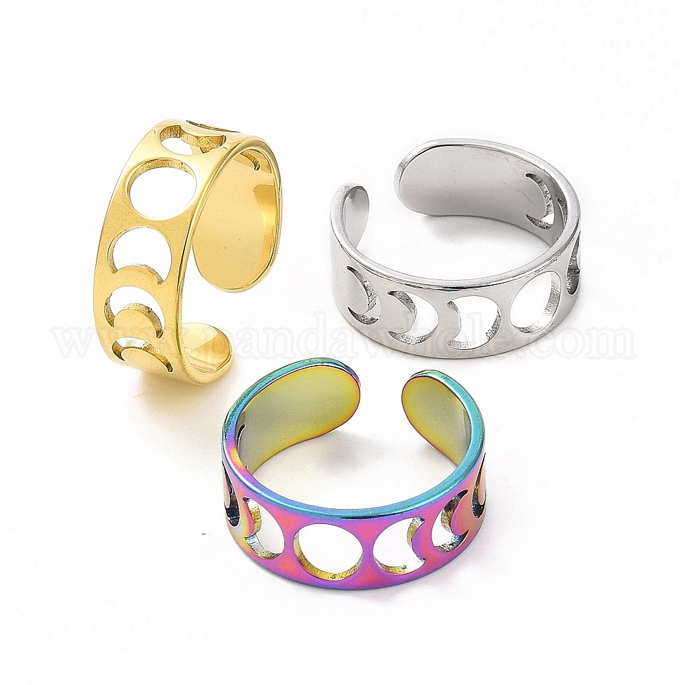 • Rainbow Color Ионное покрытие (ip) 304 открытая манжета из нержавеющей стали с фазой Луны для женщин, Радуга цветов, размер США 6 (16.5 мм)