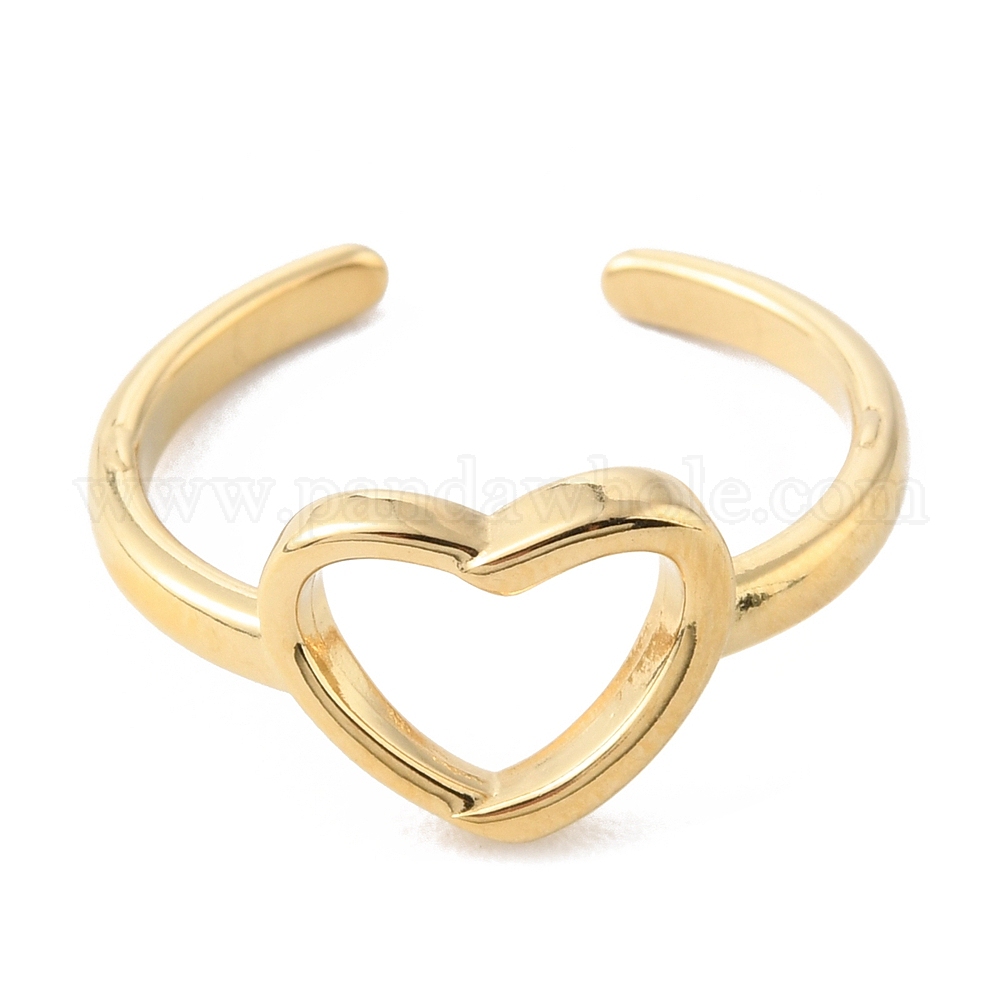 • Настоящее золото 14K 304 открытые манжеты с полым сердцем из нержавеющей стали на День святого Валентина, реальный 14 k позолоченный, размер США 8 1/2 (18.5 мм)