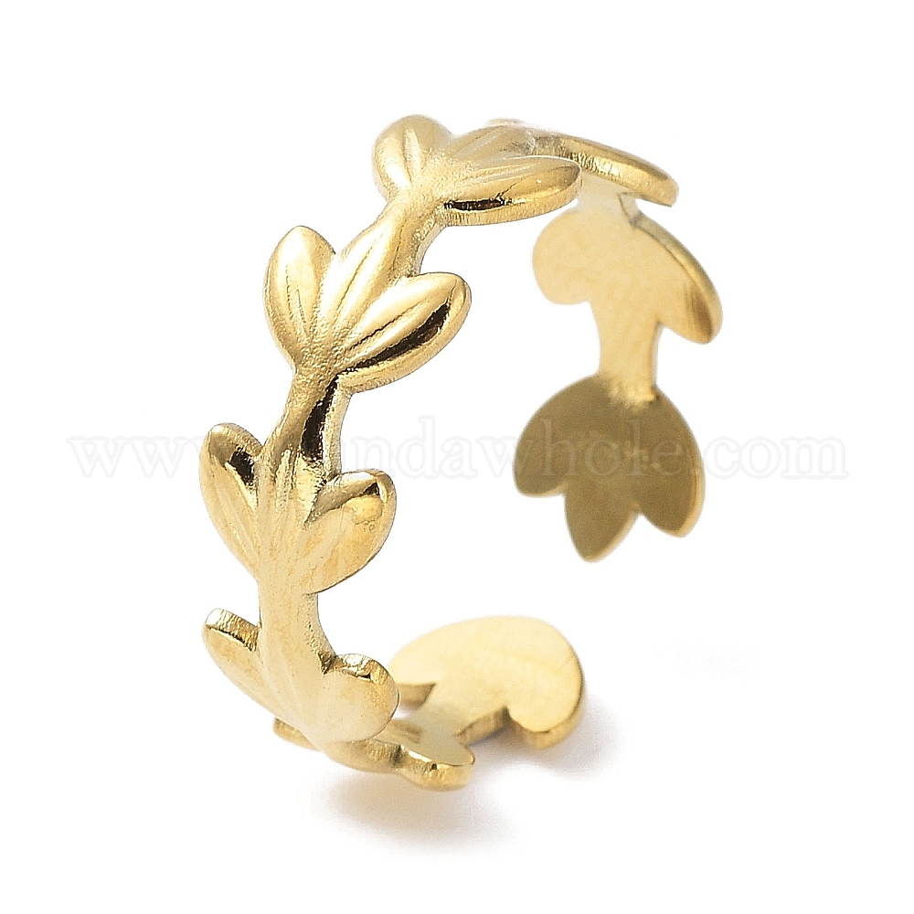 304 палец кольца из нержавеющей стали, полированный, кольца-манжеты в виде листьев для женщин