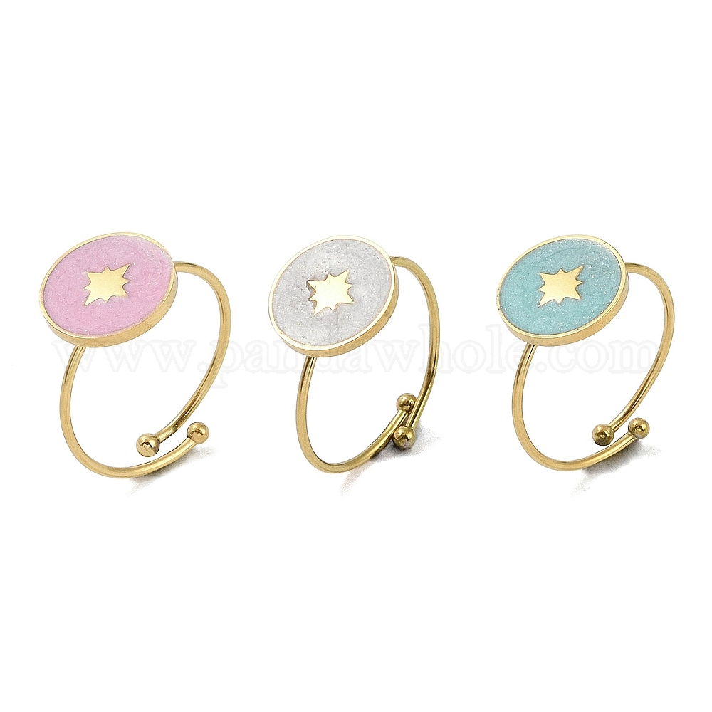 Плоский круглый со звездой 304 эмалированное кольцо из нержавеющей стали, без никеля , 316 открытая манжета из хирургической нержавеющей стали для женщин, реальный 18 k позолоченный